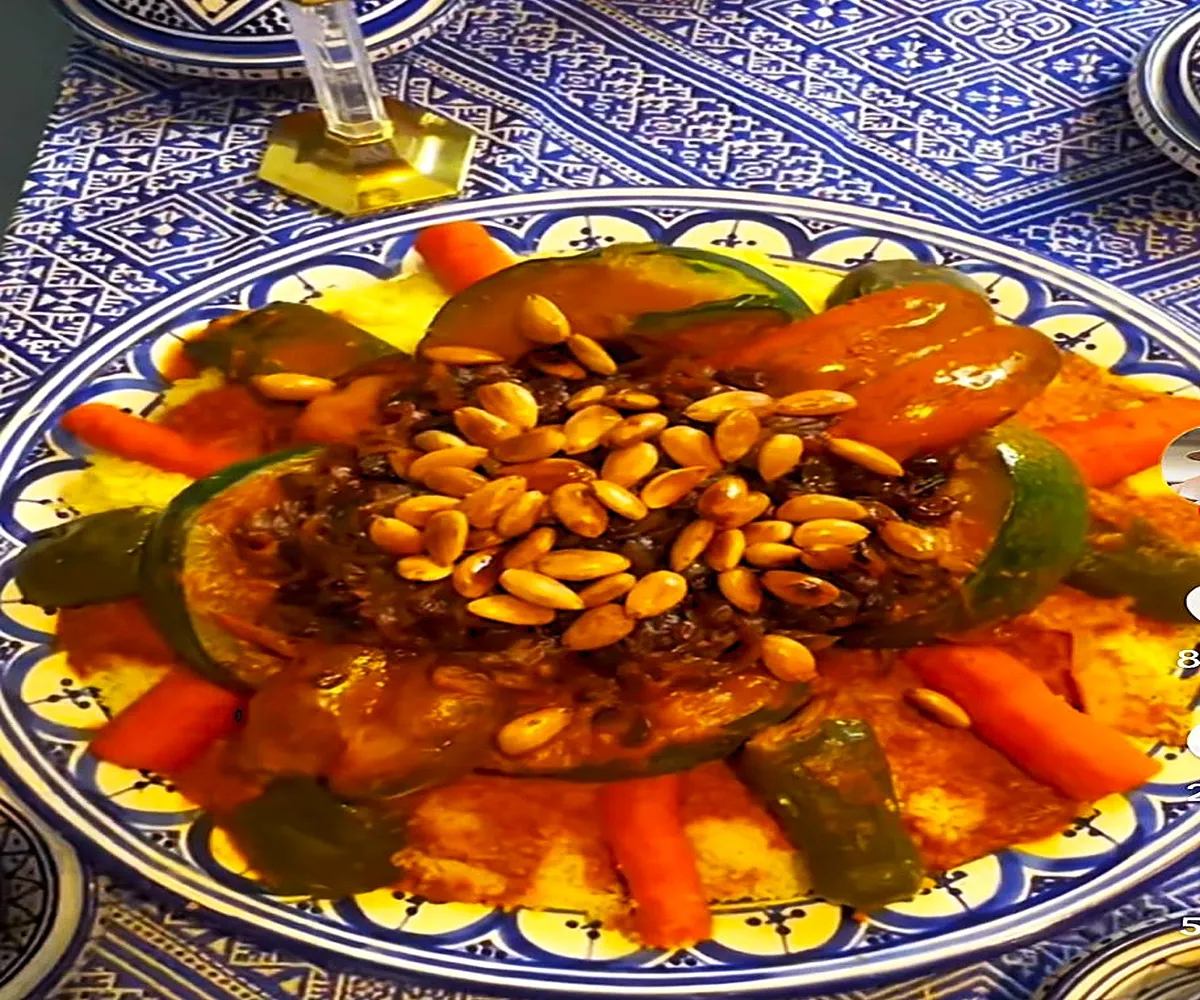Le couscous aux sept légumes est l’un des plats les plus emblématiques de la cuisine marocaine, un grand classique du vendredi et de la fête de Lmawlid où la semoule fine est généreusement servie avec un mélange coloré de légumes de saison mijotés dans une sauce épicée.