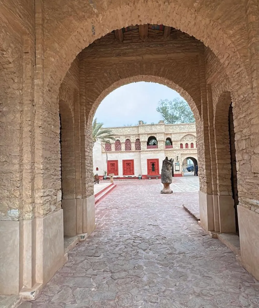 Ce vocabulaire, inspiré de l’Anti-Atlas et de l’Atlas, a été exécuté par des maîtres-artisans locaux formant des apprentis sur place. Chaque mur raconte le geste d’un maâlem, chaque ruelle est un prétexte à la photo.