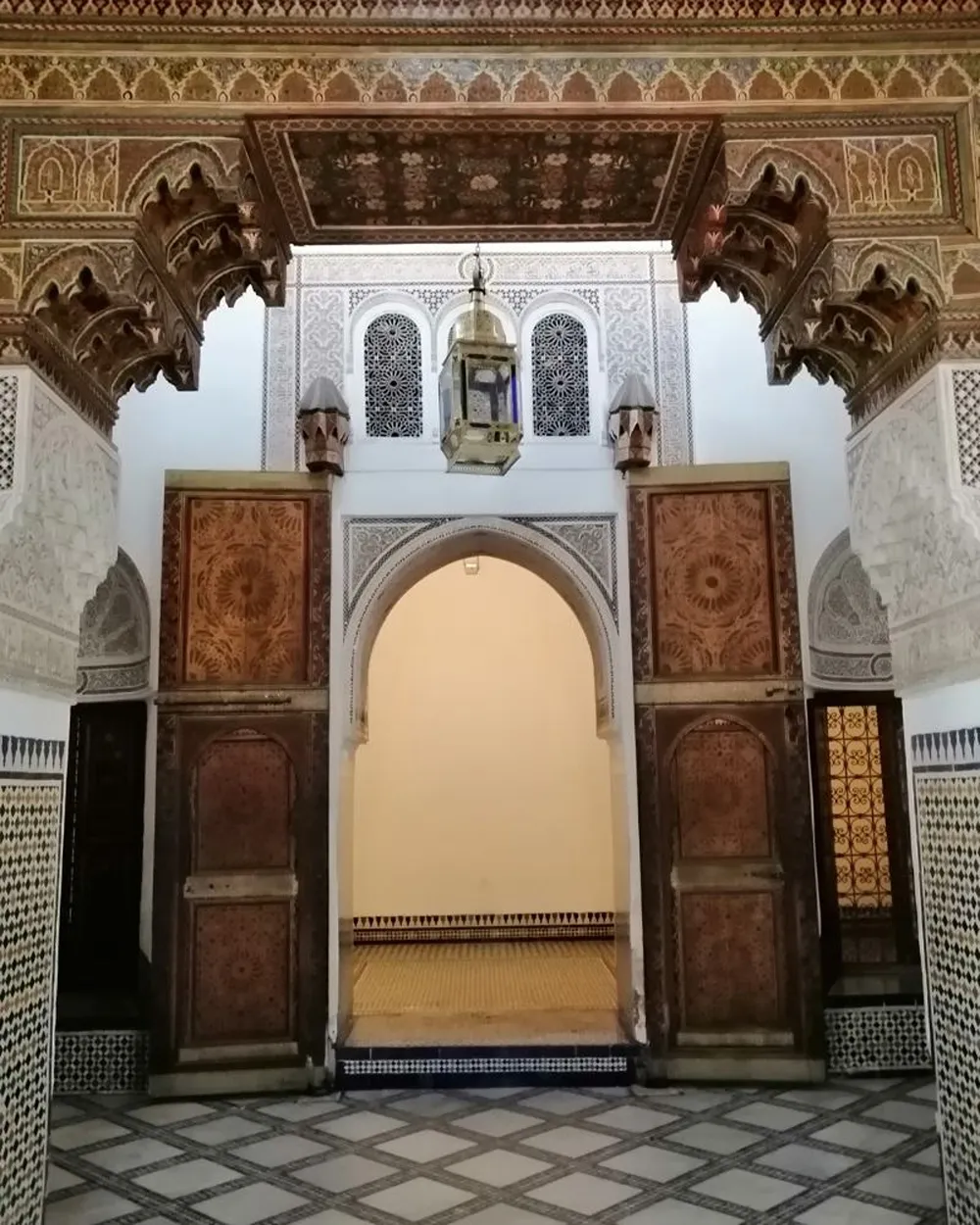 Les artisans les plus talentueux du XIXᵉ siècle participèrent à sa construction et à sa décoration, mêlant zelliges colorés, bois sculpté et stucs finement ciselés. Chaque espace témoigne du savoir-faire de l’architecture marocaine traditionnelle.