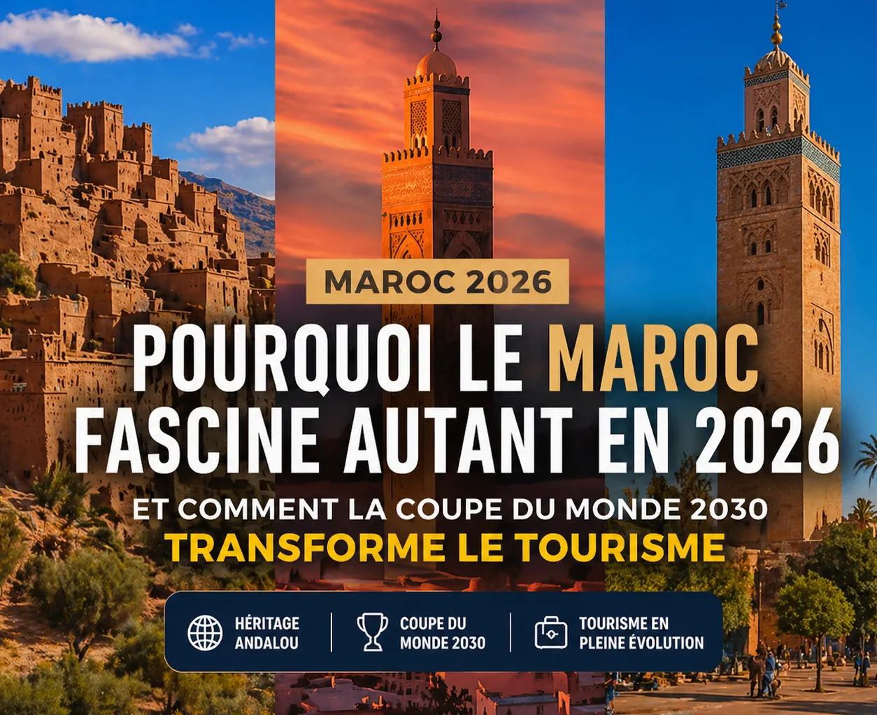 En 2026, le Maroc n’est plus seulement une destination touristique : c’est un pays en pleine transformation, au centre de l’attention mondiale. Entre modernisation rapide, valorisation de son patrimoine et préparation de la Coupe du monde 2030, le royaume attire de plus en plus de voyageurs, d’investisseurs et de curieux.
