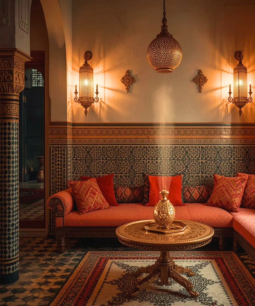 Après la rupture du jeûne, dans de nombreuses maisons marocaines, le boukour est diffusé pour parfumer l’intérieur. La fumée parfumée se répand lentement, s’accroche aux tissus, enveloppe la soirée d’une chaleur particulière.
